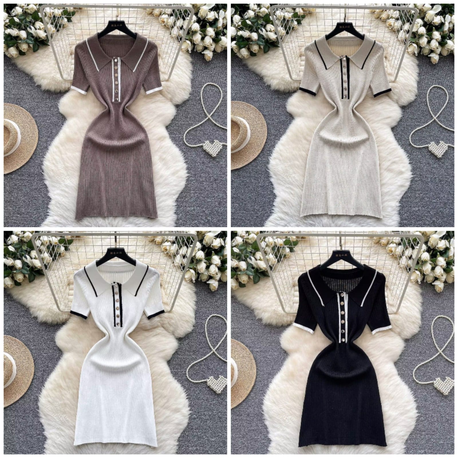 Chic Elastic Knit Polo-Neck Button Bodycon Short Sleeve Women Elegant Korean Fashion Vestidos Summer Slim Wrap Pencil Dress